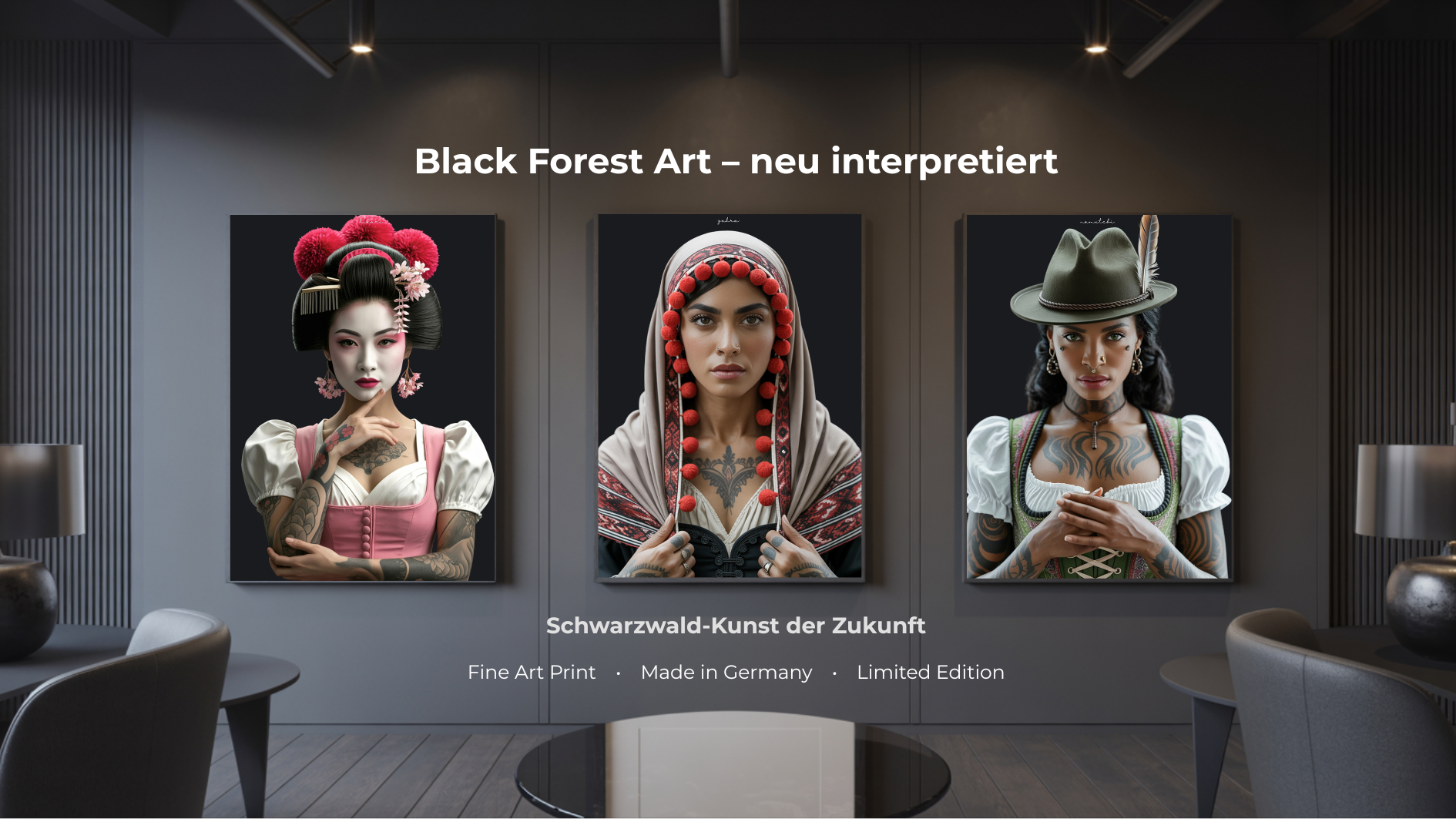 kukuQ noir steht für hochwertige AI-Kunst aus dem Schwarzwald, inspiriert von internationalen Kulturen. Unsere Werke vereinen Tradition und digitale Ästhetik zu einer einzigartigen Form von Black Forest Art.